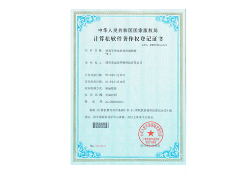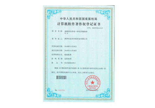 油煙凈化器油霧分解凈化軟件V1專利證書